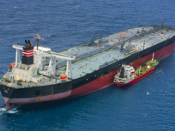 The two vessels, the British Shield and Angeles B, performed a historical bunker delivery in June 2009. For the first time Curoil delivered fuel to two VLCC tankers simultaneously. This operation took place just off the coast of Curaçao and Aruba.